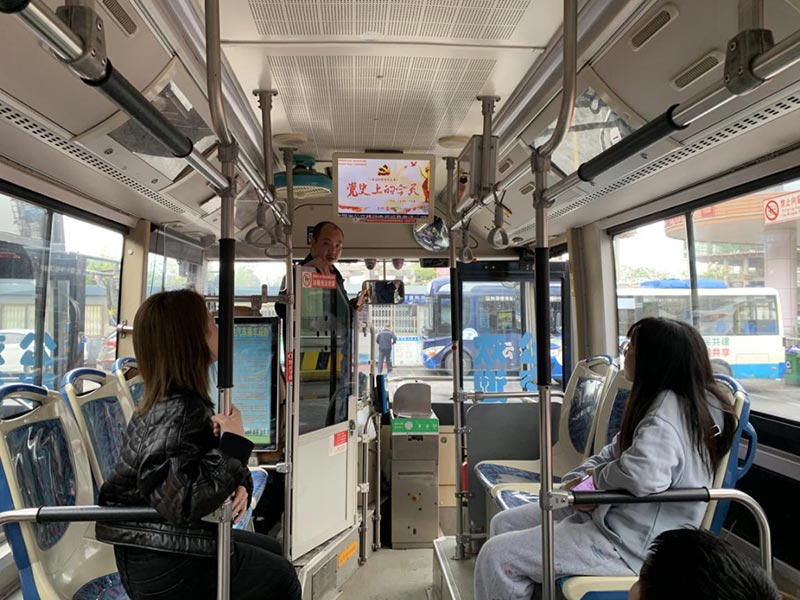 公交有著流動性強(qiáng)、宣傳面廣的優(yōu)勢,將車廂打造成流動的紅色文化陣地,可以利用好乘客的碎片化時間,讓他們在乘車時間都能看完聽完一個黨史故事,從而潛移默化地將黨史知識傳遞給市民,效果很好,也很吸引乘客。除《黨史上的今天》外,公交還將《國資委黨史大講堂》《黨史大講堂聯(lián)播》等學(xué)習(xí)視頻一并播出,將學(xué)史明理、學(xué)史增信、學(xué)史崇德、學(xué)史力行融入生活,讓黨史學(xué)習(xí)教育以簡單、易懂、新穎的方式走進(jìn)人民群眾身邊。