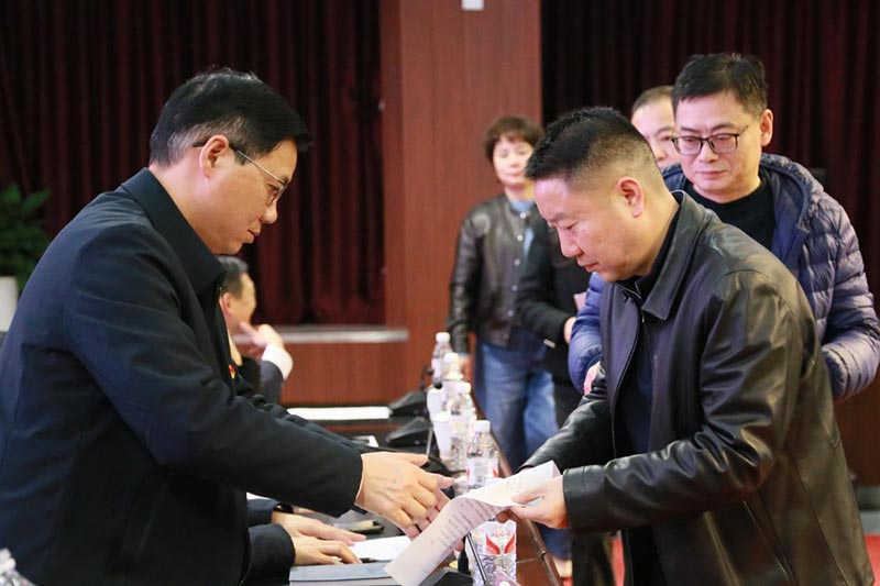 隨后,集團(tuán)中層管理人員及技術(shù)專家向黨委書記、董事長賈先才遞交《廉潔從業(yè)承諾書》。