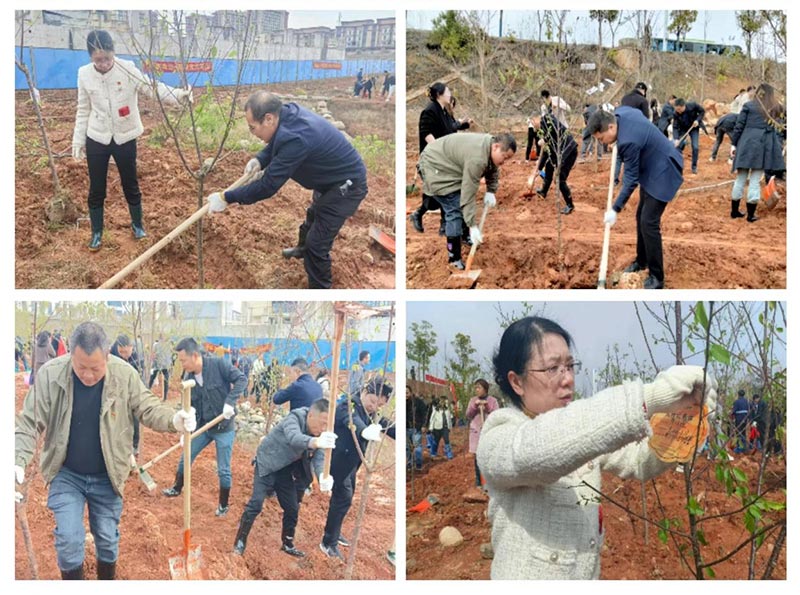 活動現(xiàn)場,揮鍬挖坑、扶苗培土、提水澆灌、掛愛心認養(yǎng)牌,分工協(xié)作、干勁十足,一派熱火朝天的勞動場景。合力親手栽種下一棵棵樹苗搖曳在和煦春風(fēng)中生機勃勃,儼然一幅"黨建紅"引領(lǐng)"生態(tài)綠"的生動畫面。